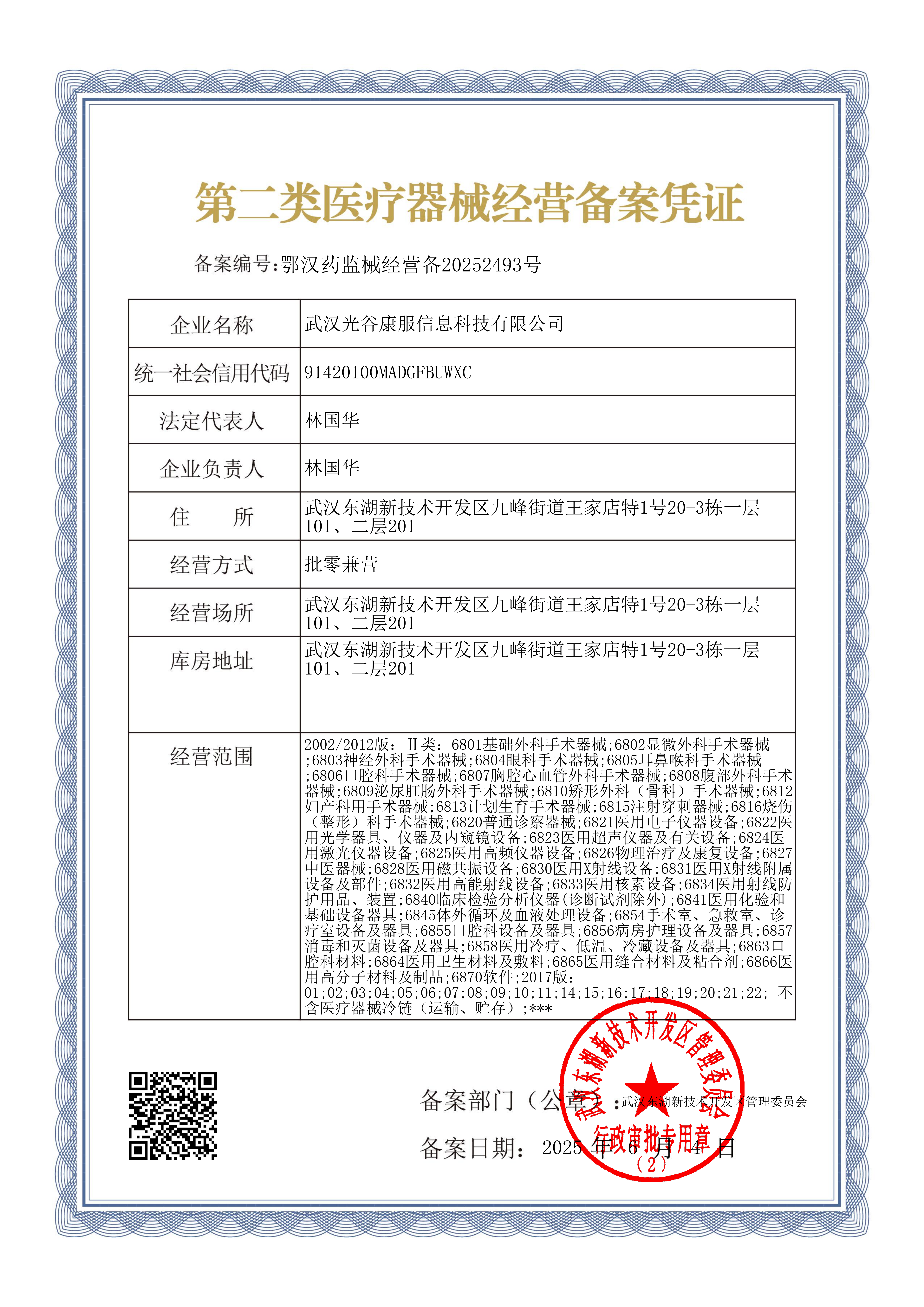 第二类医疗器械经营备案凭证