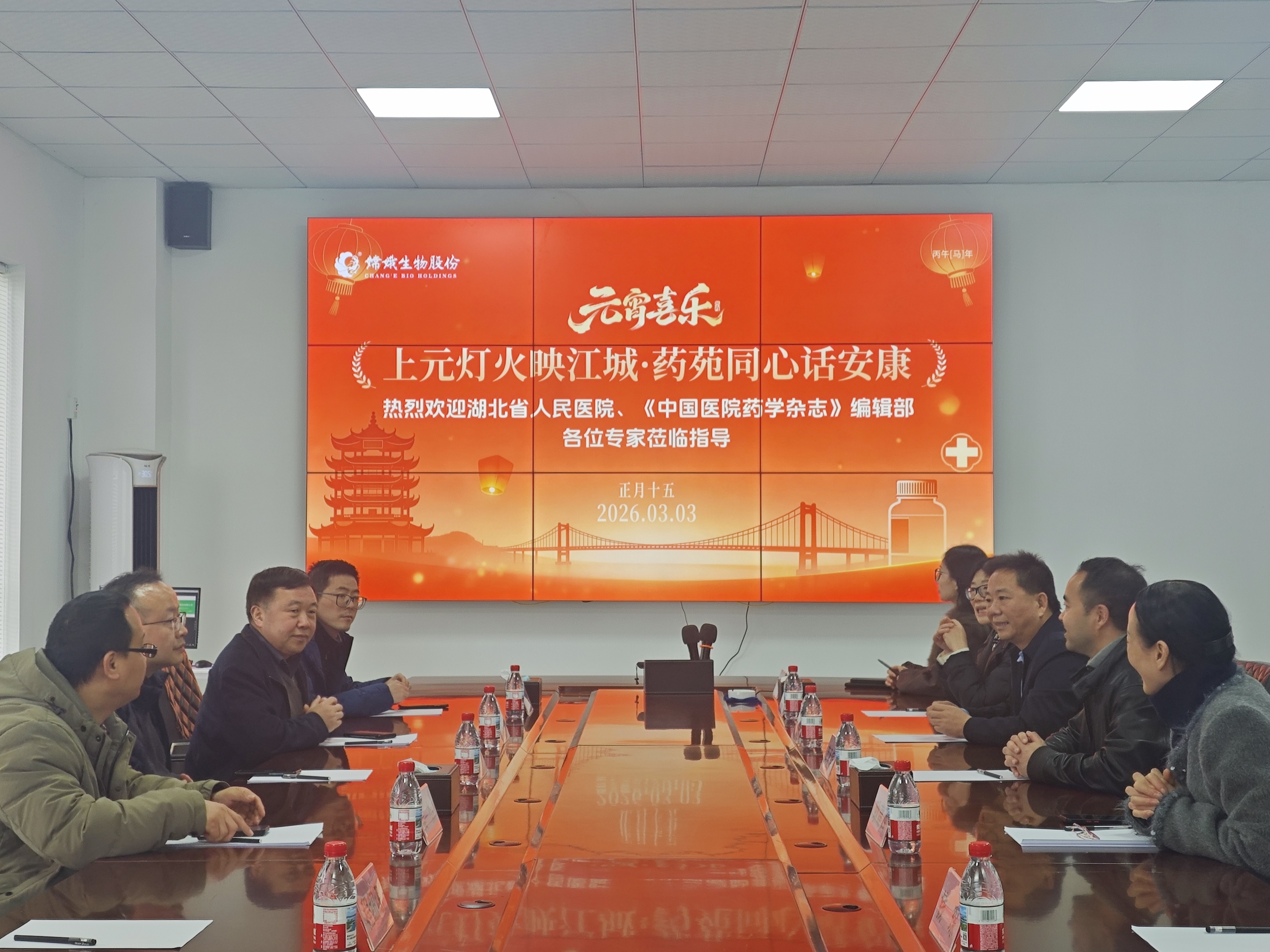 2026年3月3日下午,湖北省人民医院药学部主任、主任药师、二级教授周本宏,武汉医药卫生学会联合办公室《中国医院药学杂志》编辑部主任、医药期刊总编辑部副主任、副主任药师吴峰,湖北省人民医院博士后蔡旭、博士吴杰一行莅临光谷康服及嫦娥生物股份考察调研。光谷康服创始人、嫦娥生物股份董事长林国华、嫦娥生物股份副总裁张俊萍博士、光谷康服总经理薛承镔、光谷康服首席药剂师耿建西、嫦娥家负责人袁忱等陪同接待。此次考察旨在深化医药与大健康产业的产学研融合,探索科技创新与临床服务的协同路径。