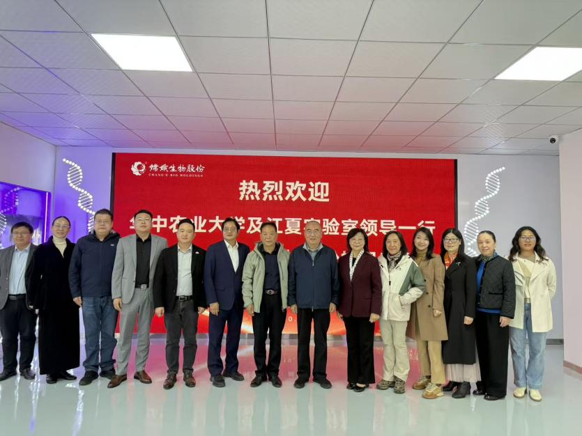 2025年10月21日上午,湖北嫦娥生物股份迎来了一场高规格的考察交流活动。华中农业大学金梅林院士、黄文教授、邹忠教授、张强教授、刘小坤教授、赵亚教授,江夏实验室主任、“人民英雄”张定宇,常务副主任黄碧海,科研部部长李旻,以及郑店街道办事处副主任张丹、区大健康产业链办公室主任等一行莅临嫦娥生物股份参观指导。公司董事长林国华率高管团队陪同接待。