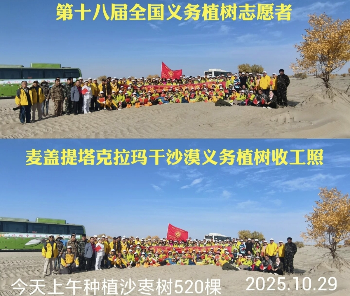 此次活动中,光谷康服团队与植树发起人朱宜萱教授、各地“树友”深入交流,聆听十年植树故事,感受“一棵树,一片心”的坚守情怀。86岁高龄的朱宜萱教授年复一年的坚守,西藏老党员杜沛臻为纪念入党50周年特意两度前来,祖孙三代共同植树的家庭,还有那些从全国各地因同一份热爱汇聚于此的“树友”们……他们的故事,我们看到了超越地域、年龄、职业的奉献情怀,真切感受到了“奉献、友爱、互助、进步”的志愿精神,麦盖提人民“敢教沙漠变绿洲”的坚定信念。这份精神财富,将成为光谷康服企业文化中又一笔宝贵的积淀。