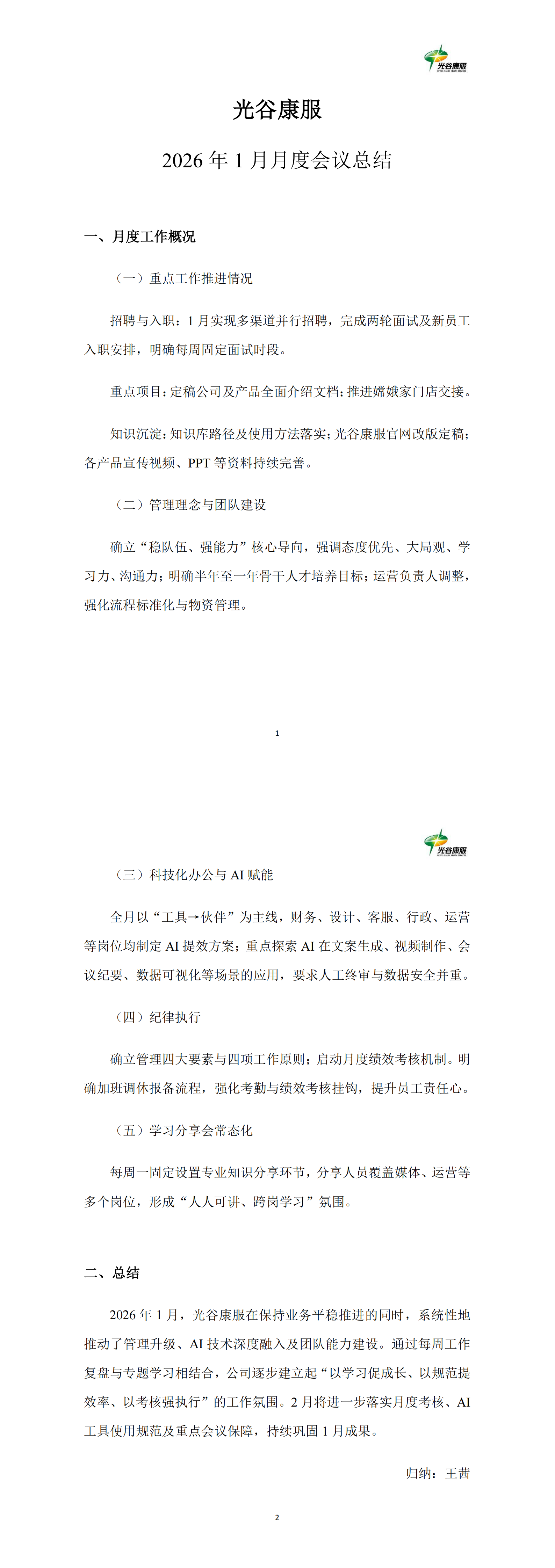 光谷康服2026年2月月度会议总结