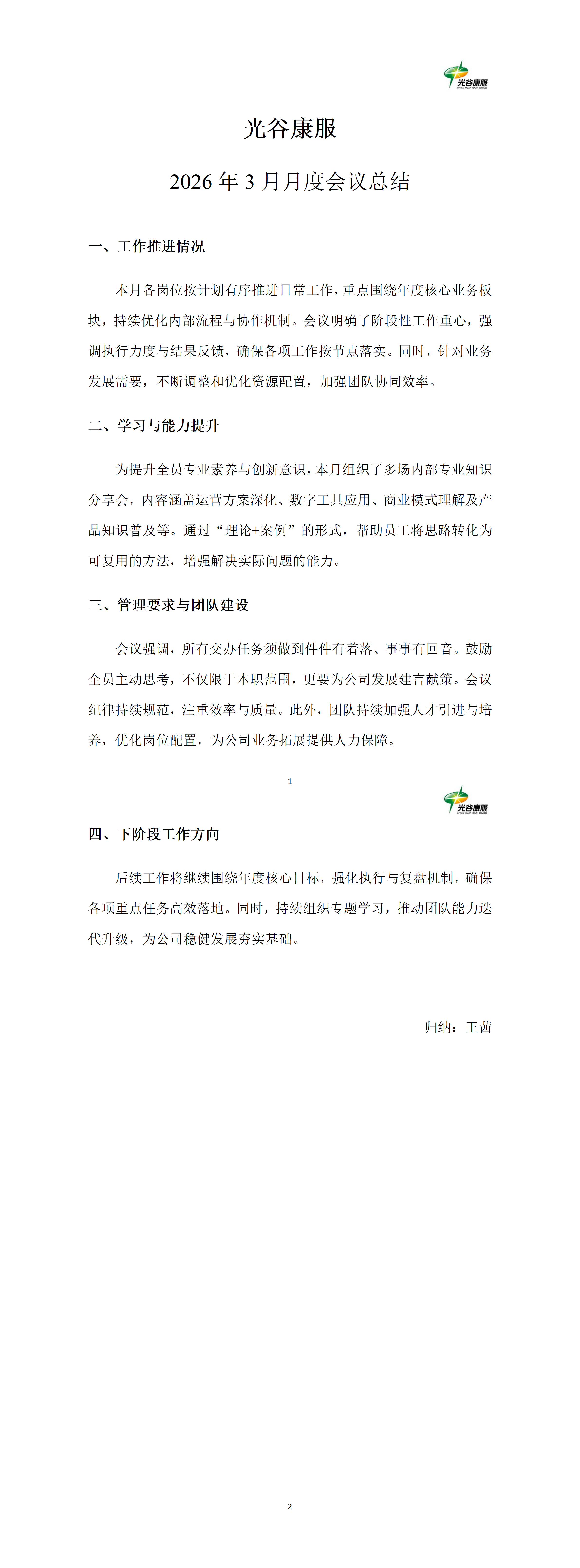 光谷康服2026年3月月度会议总结
